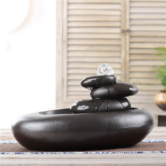 Ceramic Multi-layer Stone Design Water Fountain Ornaments Office Desktop Feng Shui Crafts Indoor Waterscape Home Decoration Gift
