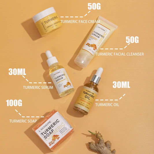5Pcs/Set Turmeric Skin Care Set Acne Dark Spot Remover Whitening Facial Serum Natural Organic Moisturizing Face Cream Essence
